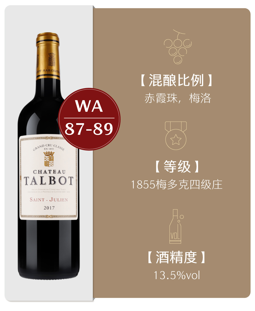 Talbot的酒质一贯很稳定,优良的酒质加上大宝庄的英文、法文发音都非常易记,朗朗上口,这也令“大宝”成为了世界知名的法国名庄。