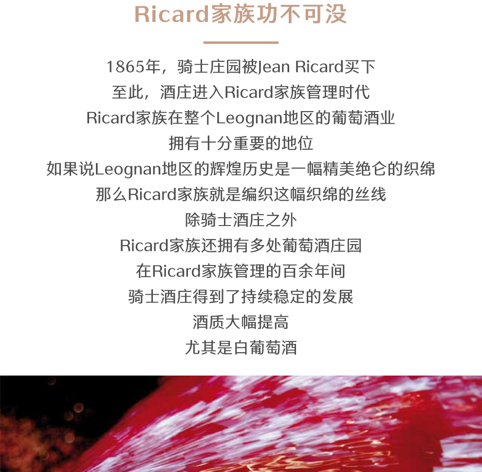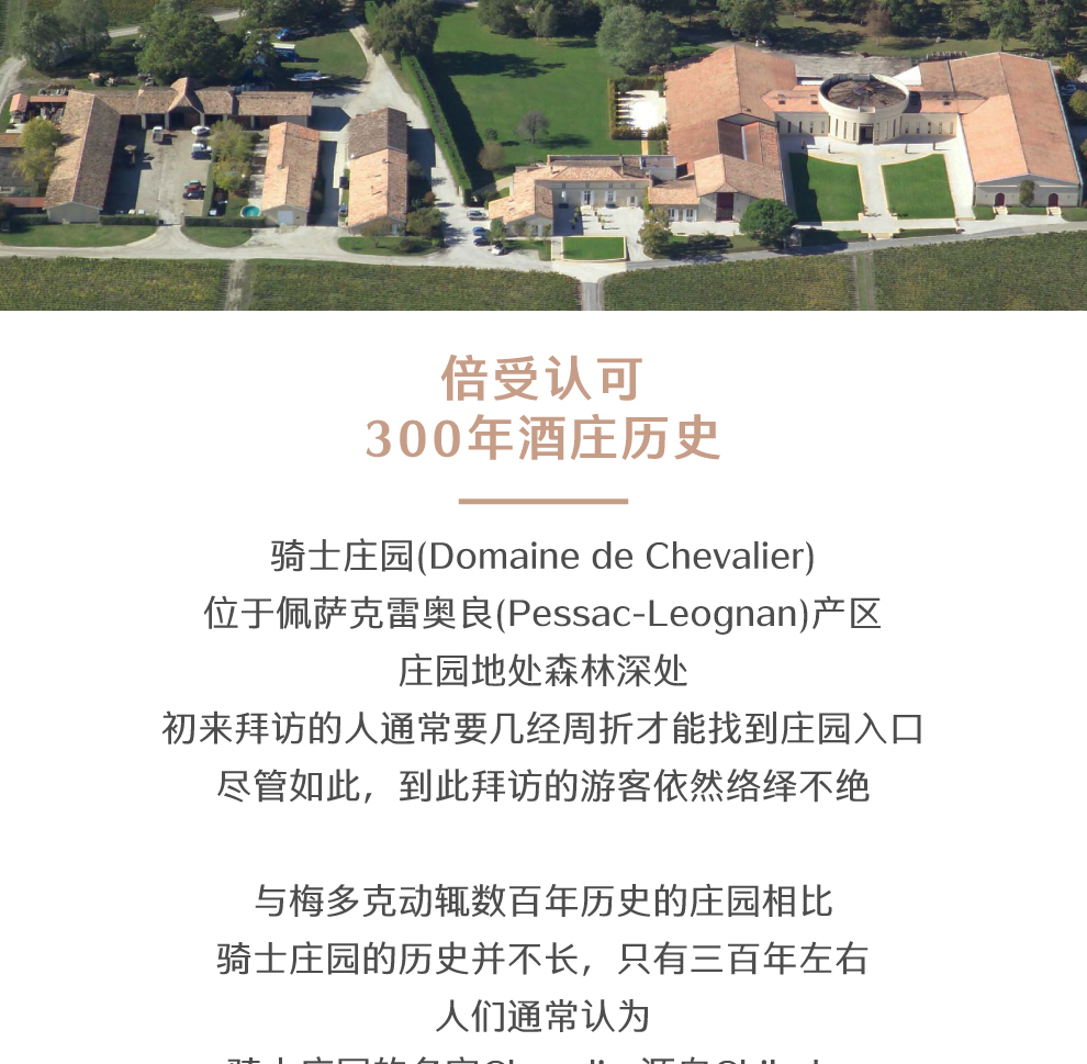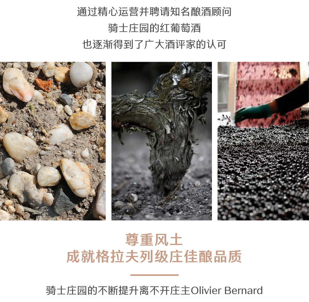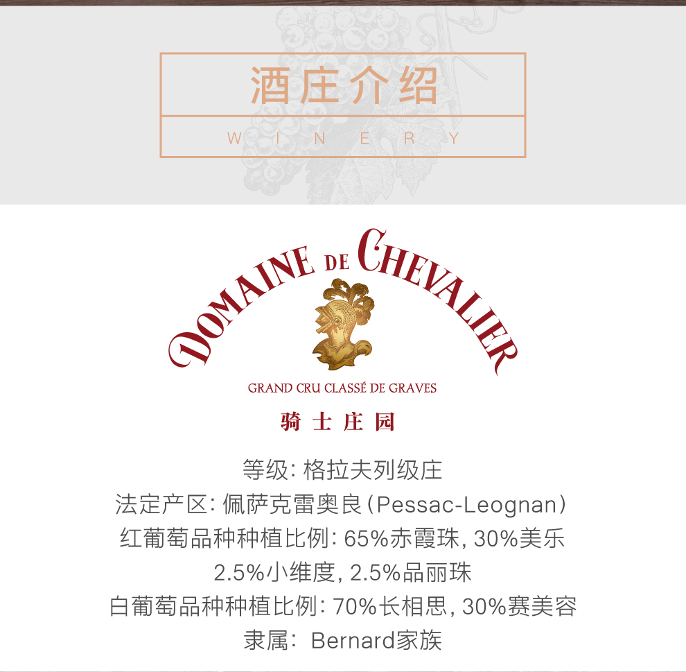 坐落于法国波尔多(Bordeaux)格拉夫(Graves)的佩萨克-雷奥良(Pessac-Leognan)产区。格拉夫仅有6座酒庄的红、白葡萄酒皆入选列级庄等级,而骑士便是其中之一。