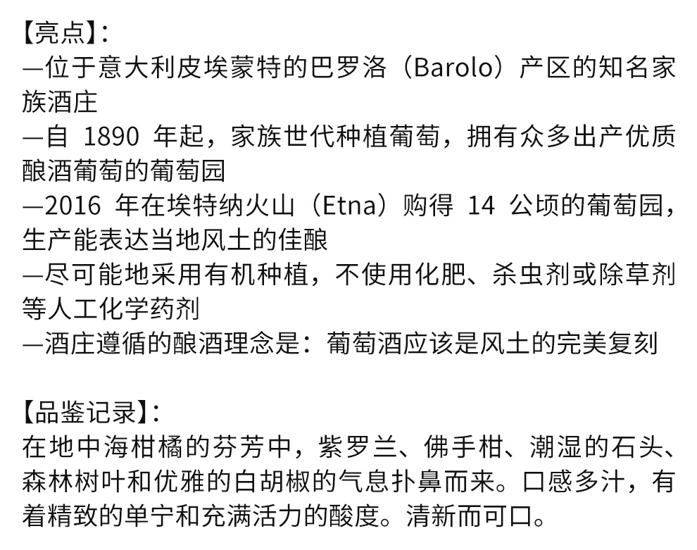 大卫在继承传统的同时,一直在寻找新的风土挑战自我,2016年他在埃特纳火山(Etna)购得一片14公顷的葡萄园,生产能表达当地风土的佳酿。