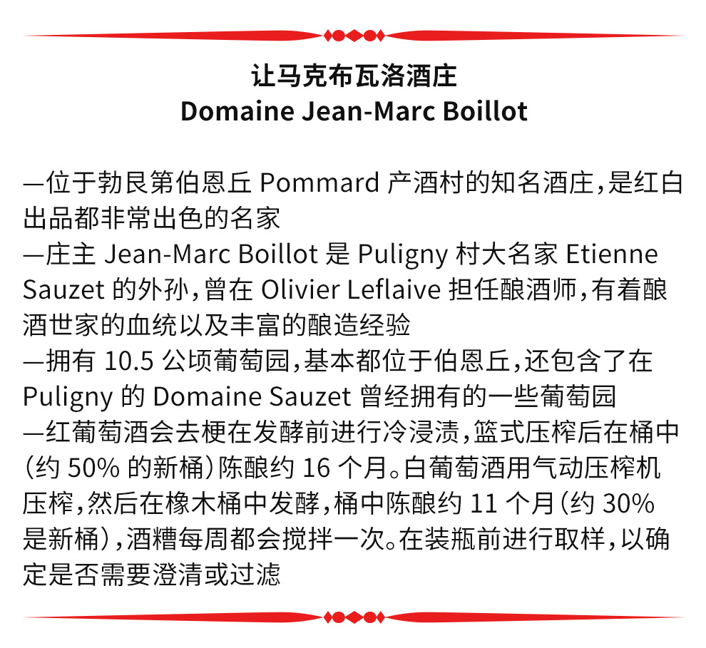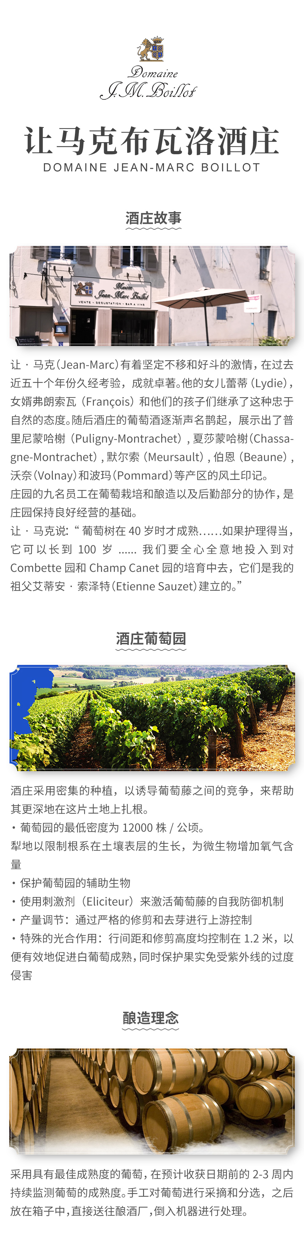让·马克(Jean-Marc)有着坚定不移和好斗的激情,在过去近五十个年份久经考验,成就卓著。他的女儿蕾蒂(Lydie),女婿弗朗索瓦(François)和他们的孩子们继承了这种忠于自然的态度。随后酒庄的葡萄酒逐渐声名鹊起,展示出了普里尼蒙哈榭(Puligny-Montrachet),夏莎蒙哈榭(Chassagne-Montrachet), 默尔索(Meursault),伯恩(Beaune),沃奈(Volnay)和波玛(Pommard)等产区的风土印记。