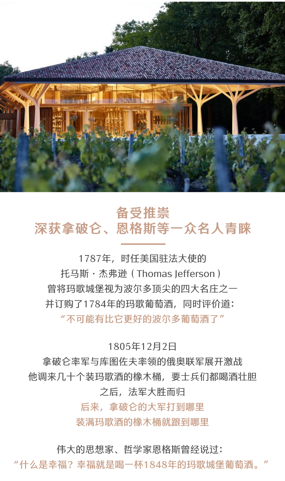 恩格斯曾经说过:“什么是幸福?幸福就是喝一杯1848年的玛歌堡酒”。