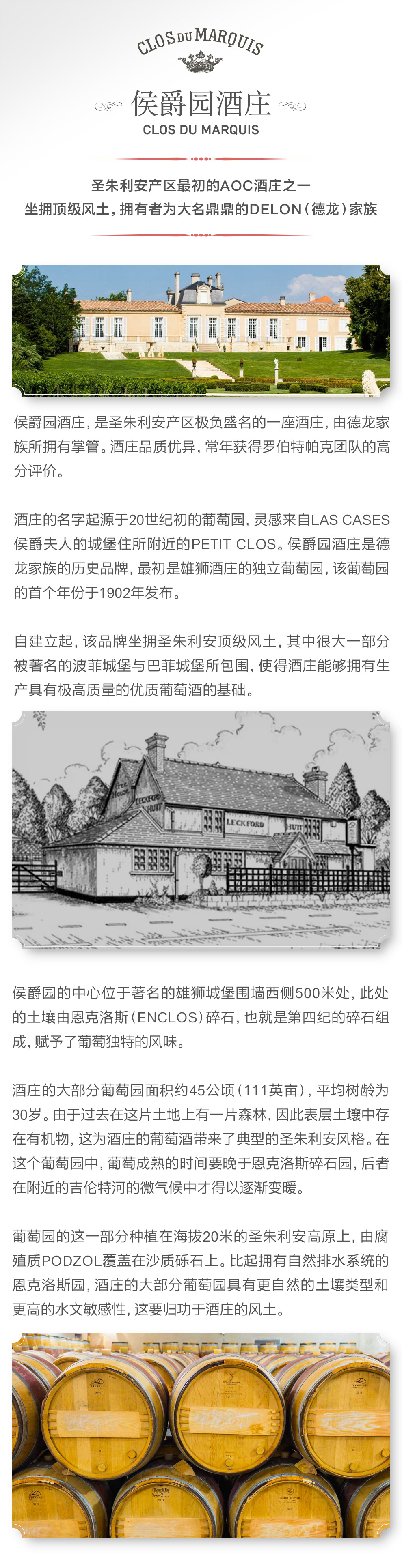侯爵园酒庄,是圣朱利安产区极负盛名的一座酒庄,由德龙家族所拥有掌管。酒庄出品品质优异,常年获得罗伯特帕克团队的高分评价。