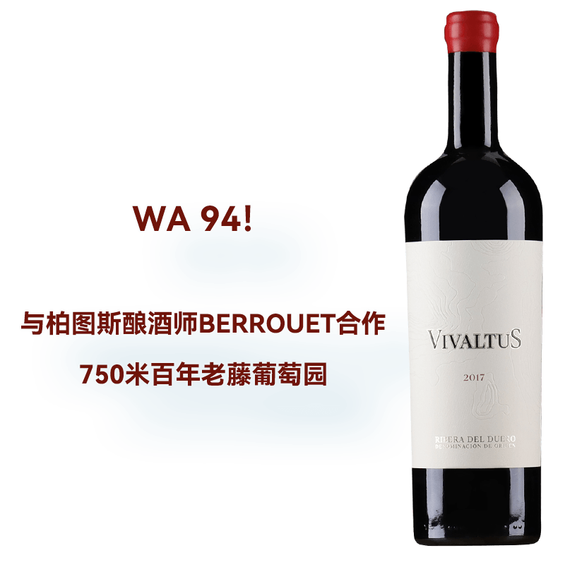 2017年这个温暖年份赋予了葡萄完美的成熟度,在法国酿酒大师Jean Claude Berrouet的监制下,经过11个月橡木桶陈酿,最终呈现出令人惊艳的风味。开瓶就能闻到黑樱桃、蓝莓酱的浓郁果香,夹杂着雪松和黑巧克力的奢华气息,单宁如丝绸般细腻。酒标上的'Vivaltus'其实是'生命+海拔'的意思,喝一口就能感受到杜罗河畔的风土灵魂。