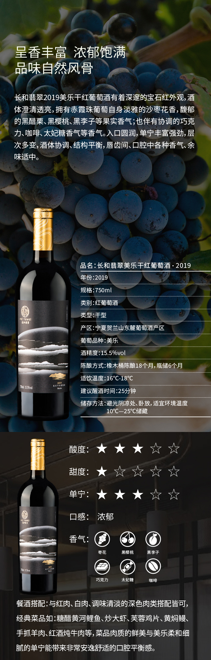 • 产品名称:长和翡翠美乐干红葡萄酒2019