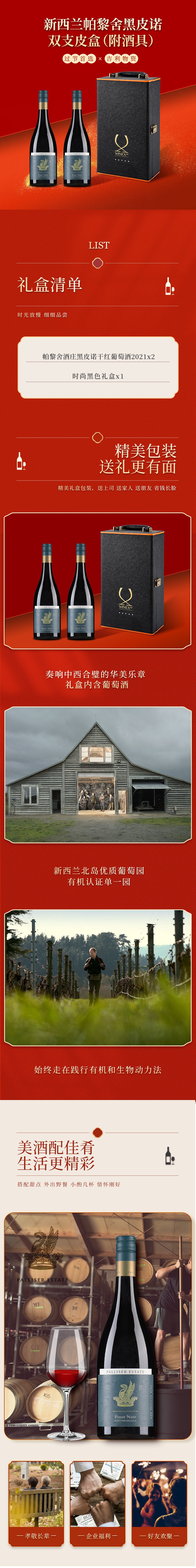 新西兰帕黎舍黑皮诺双支皮盒(附酒具)