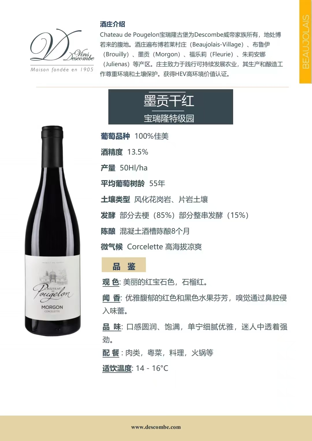 • 外文名称:CHATEAU DE POUGELON, AOP MORGON