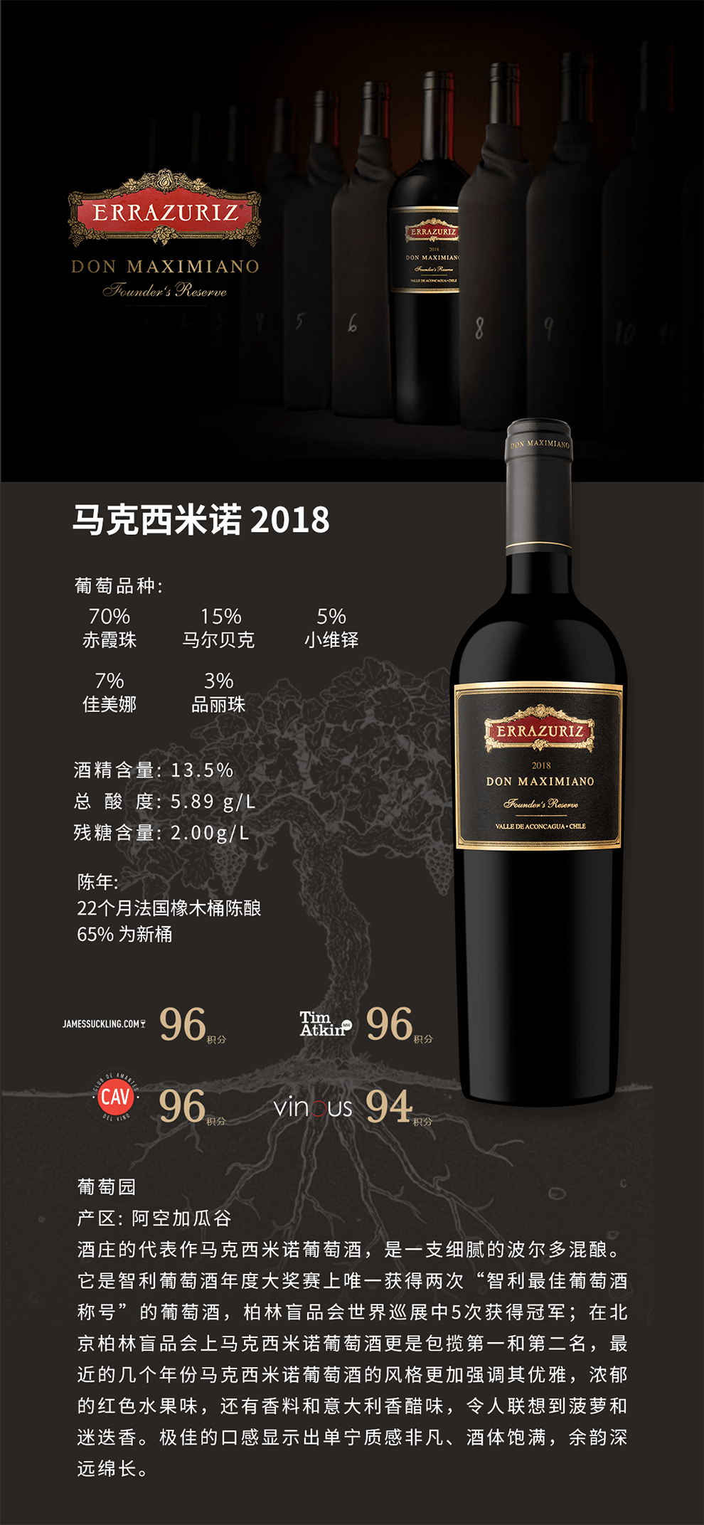 它是智利葡萄酒年度大奖赛上唯一获得两次"智利最佳葡萄酒称号"的葡萄酒,柏林盲品会世界巡展中5次获得冠军