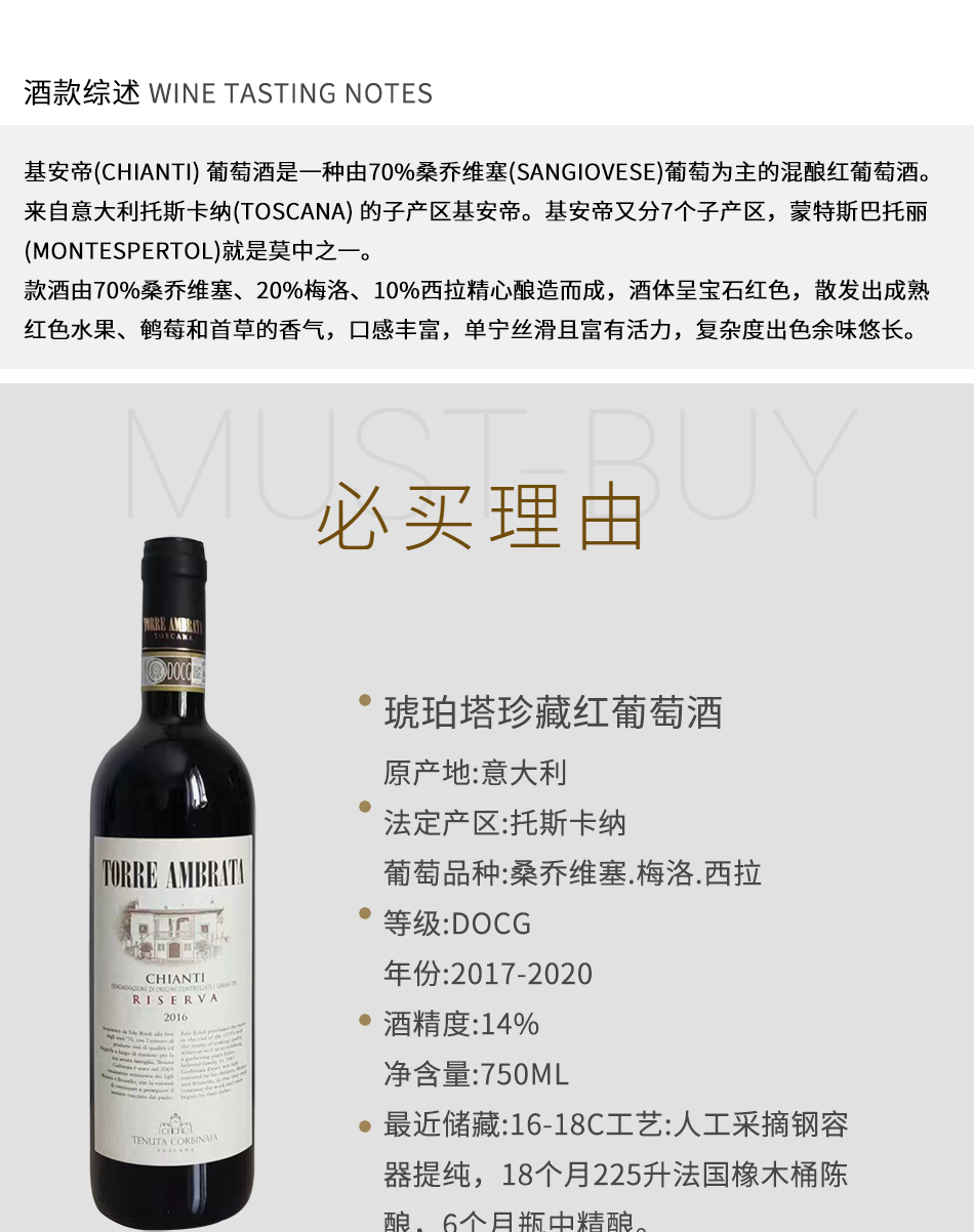 人工采摘钢容器提纯,18个月225升法国橡木桶陈酿,6个月瓶中精酿。