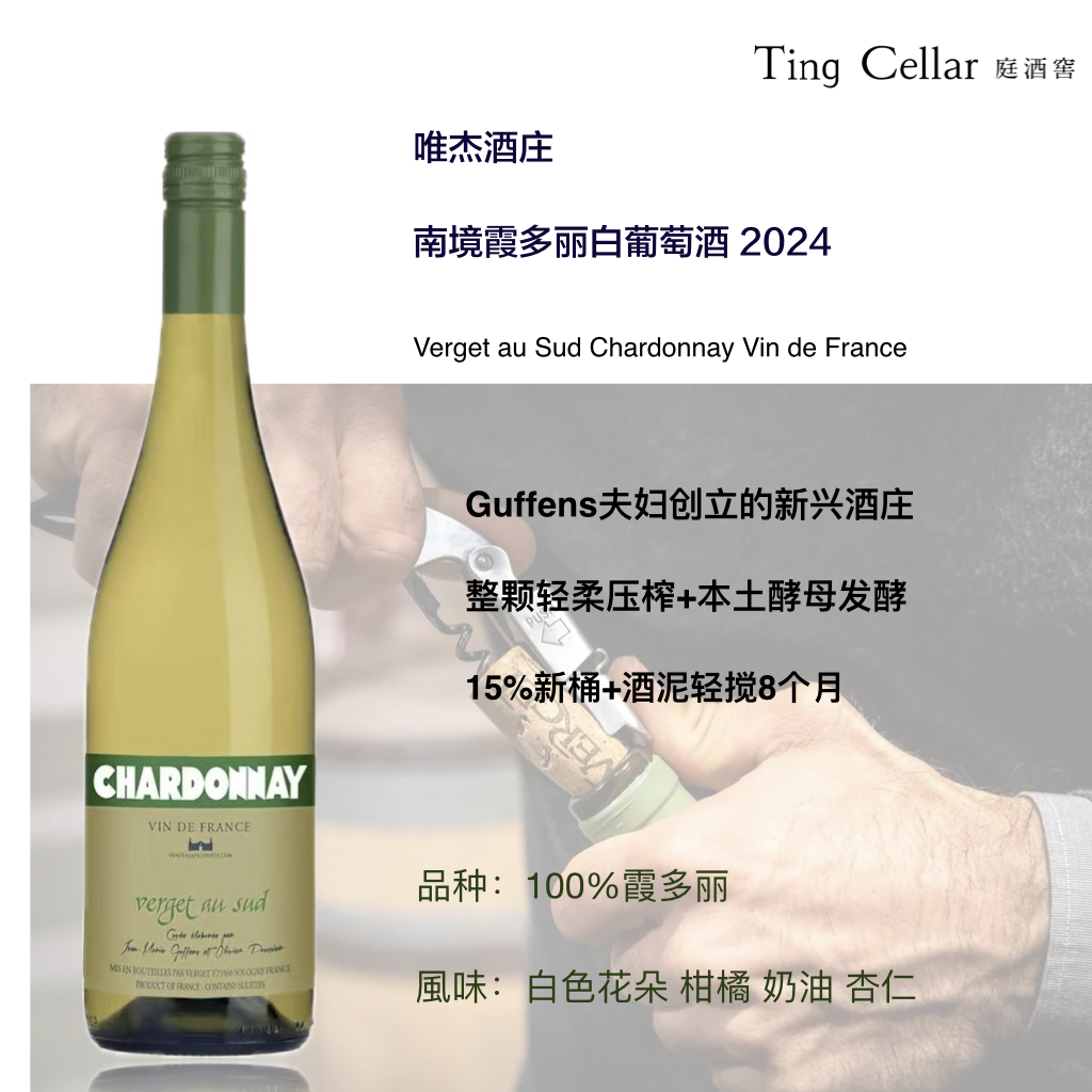 新品上市 一般贸易 品牌商户 唯杰南境霞多丽白葡萄酒   Verget au Sud Chardonnay Vin de France