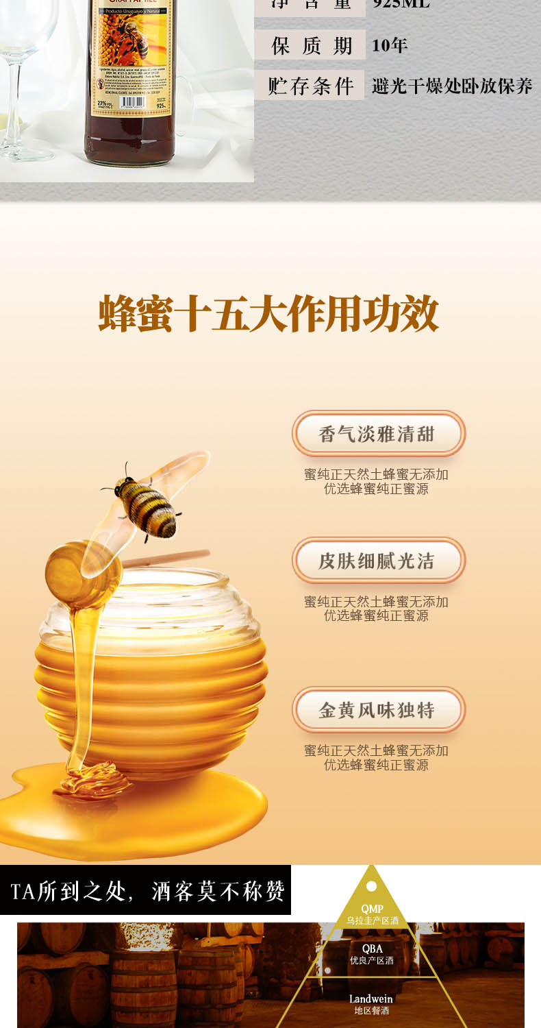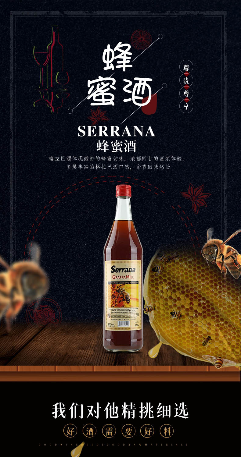 格拉巴酒体现微妙的蜂蜜韵味,浓郁回甘的蜜浆体验多层丰富的格拉巴酒口感,余香回味悠长