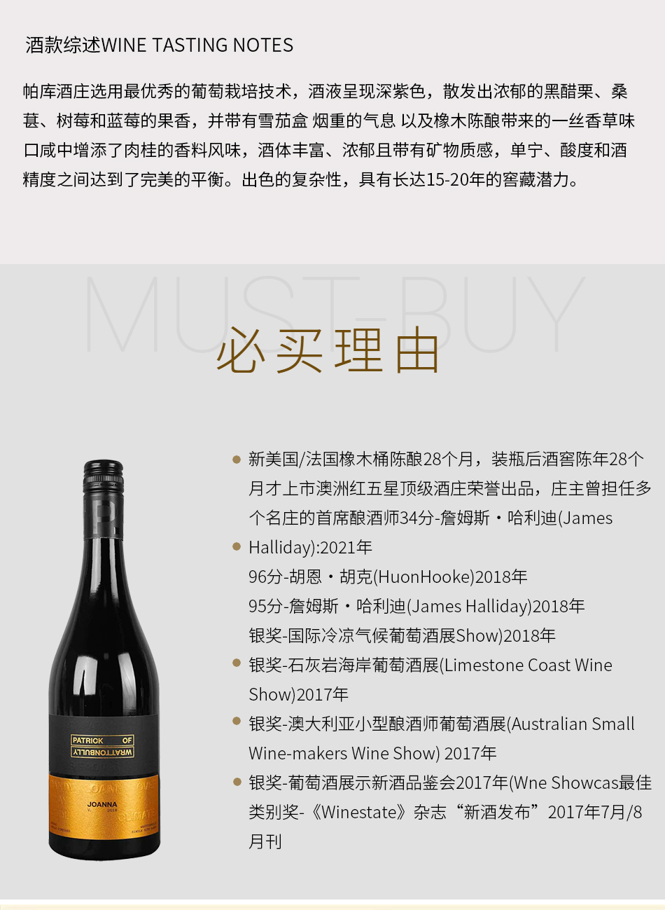 新美国/法国橡木桶陈酿28个月,装瓶后酒窖陈年28个月才上市澳洲红五星顶级酒庄荣誉出品