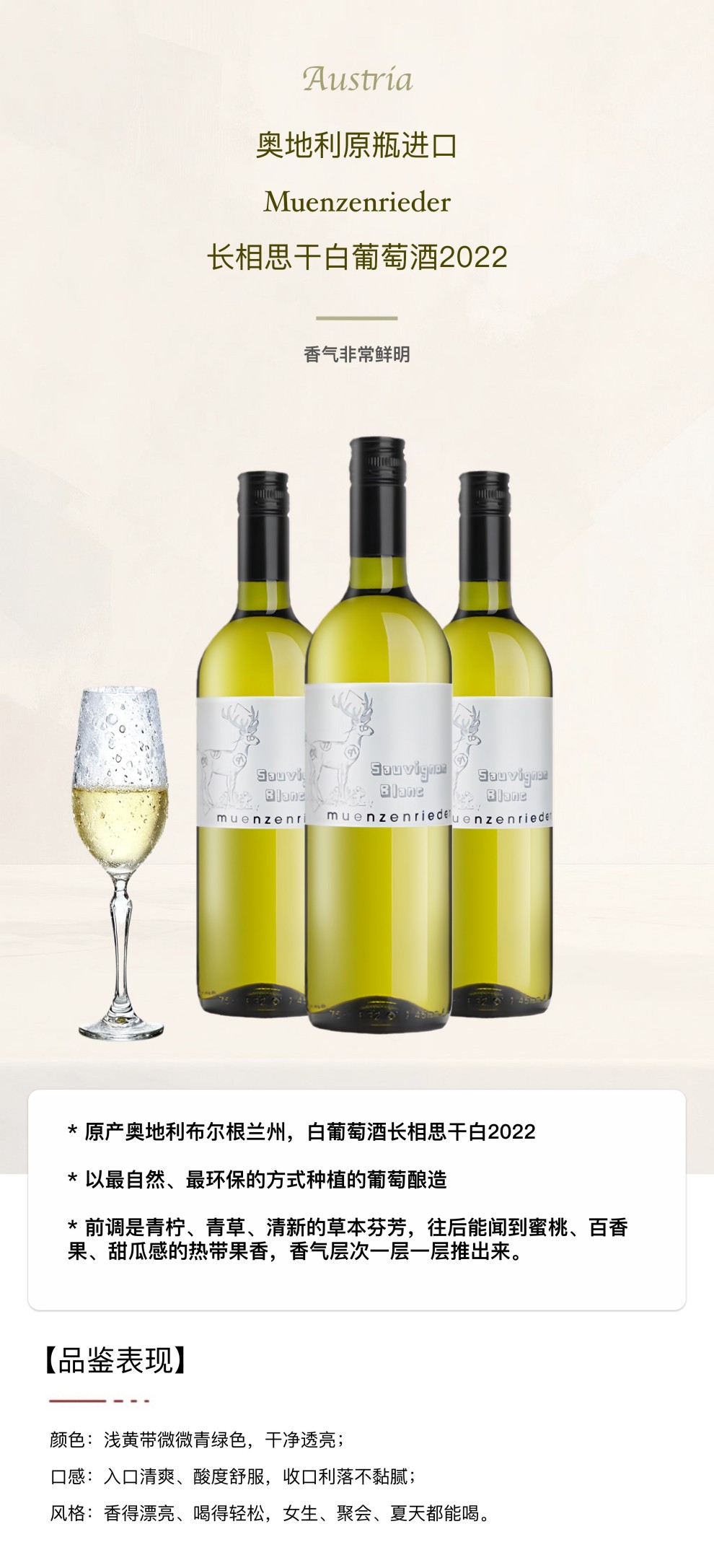 一般贸易 本月特卖 品牌商户 茗鹿德长相思干白葡萄酒 2022   MUENZENRIEDER SAUVIGNON BLANC 2022